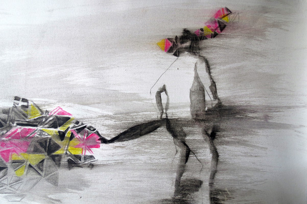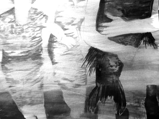 aus der serie: neue spiele I tusche & farbstiftzeichnung grösse: 50 cm x 70 cm |