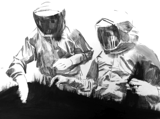 aus der serie: neue spiele II tusche & farbstiftzeichnung grösse: 30 cm x 40 cm |