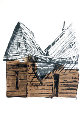 titel: biberhaus collage & schwarzer farbstift zeichnung grösse: 100 x 70 cm |